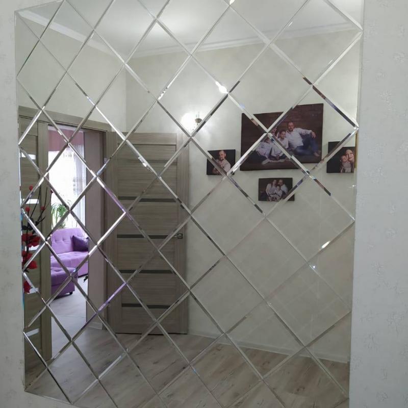 Использована зеркальная квадратная плитка с фацетом.