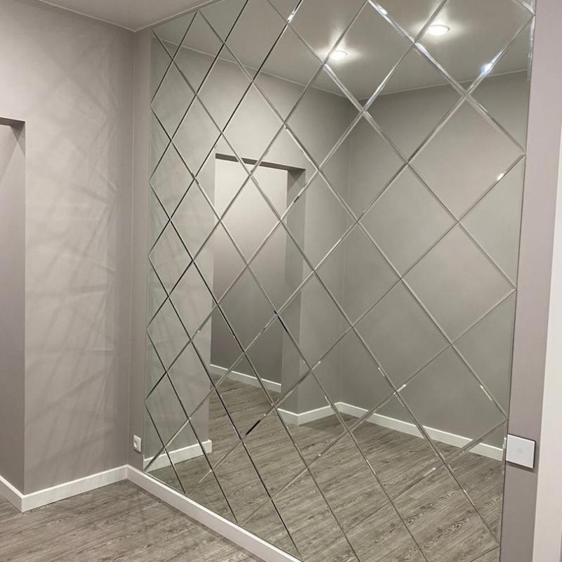 Использована зеркальная квадратная и треугольная плитка с фацетом.